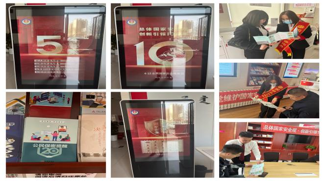 阵地管理,广泛宣传,扩大影响。该行充分利用阵地宣传优势,通过布放电子海报、播放宣传视频、发放宣传折页等多种形式,对厅堂到访客户及周边商户开展保密知识普及,引导广大群众增强保密观念、提高安全意识,营造良好的保密环境。