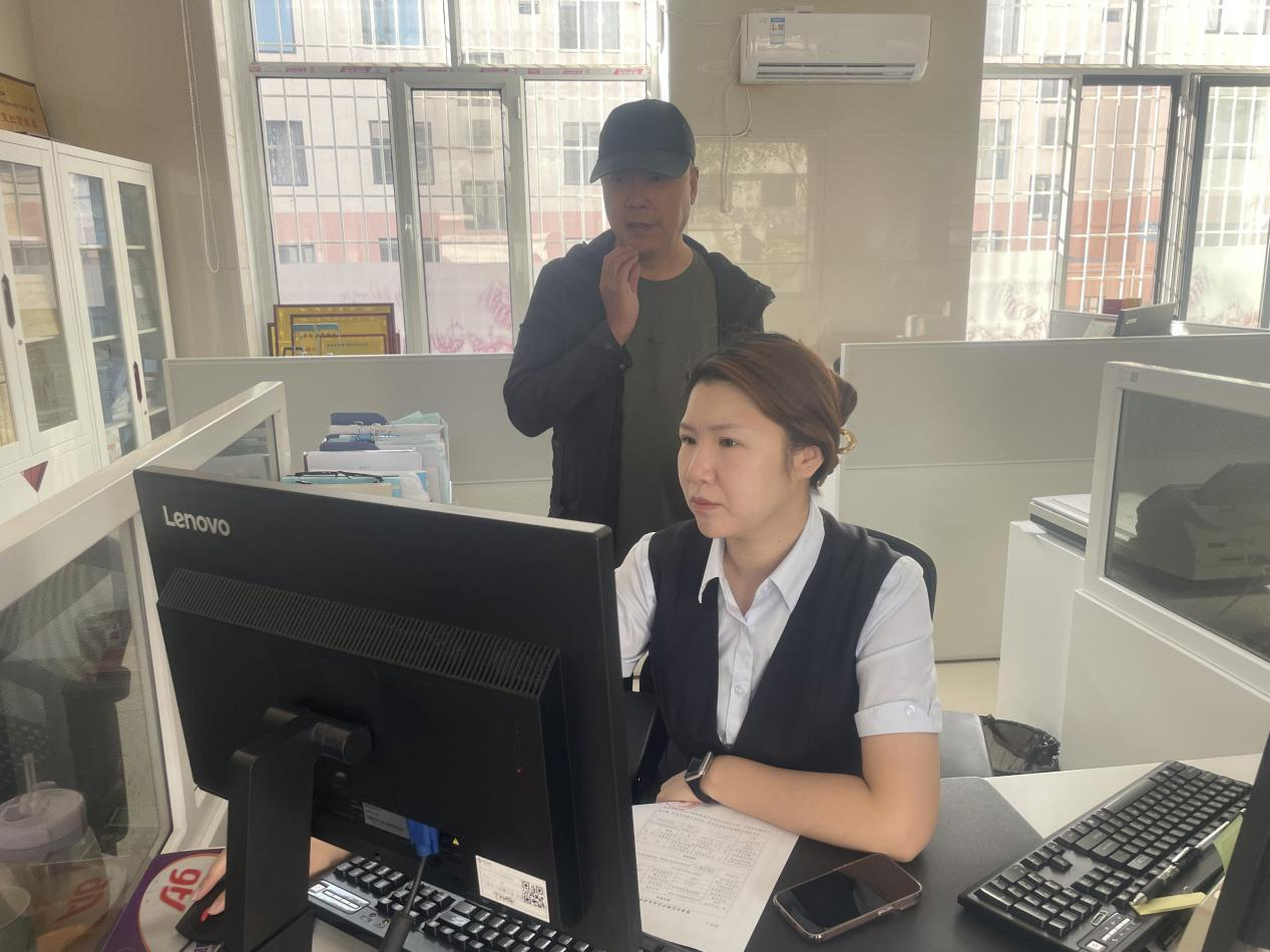 (图为中国银行二连浩特市分行员工为企业办理登记业务)