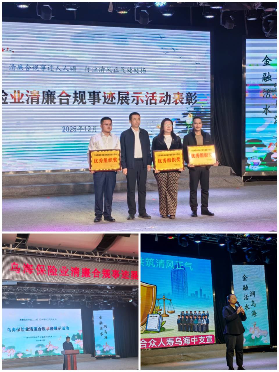 2025年12月11日,经过层层选拔与激烈角逐,合众人寿乌海中支在当地行业协会举办的“乌海保险业清廉合规事迹展示活动”中脱颖而出,荣获“优秀组织奖”。
