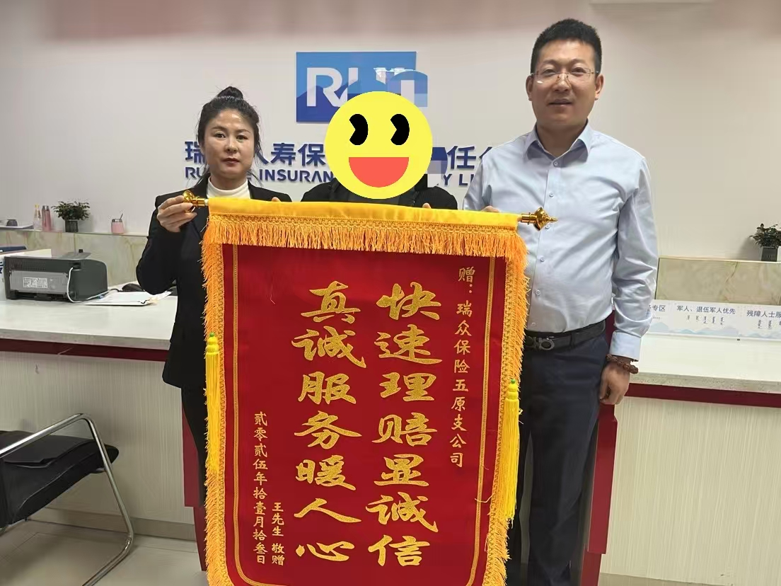 一面锦旗寄真情,一份认可践初心。2025年11月14日,客户W先生将印有“快速理赔显诚信,真诚服务暖人心”的锦旗送至瑞众保险巴彦淖尔中支五原支公司,以真挚心意感谢瑞众保险高效专业的理赔服务。