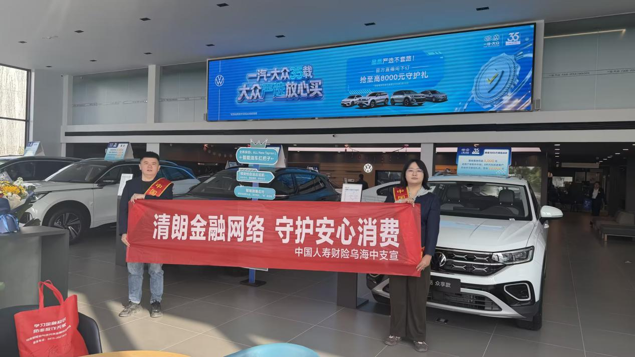 在2026年“3·15”国际消费者权益日当天,为深入贯彻落实金融消费者权益保护工作要求,切实提升合作渠道的风险防范意识,乌海中支走进一汽大众4S店,开展了以“保清朗金融网络 守护安心消费”为主题的消费者权益保护专题培训活动。