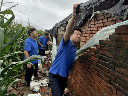 7月27日凌晨,北京市延庆区、怀柔区、密云区强降雨引发洪水和山体滑坡,多个村庄受灾。中国太保产险北京分公司理赔人员李豪、房国斌一行4人冒雨赶到密云区溪翁庄镇北白岩村,他们接到农户袁先生的报案,第一时间赶赴现场查勘被暴雨冲塌的农业大棚。