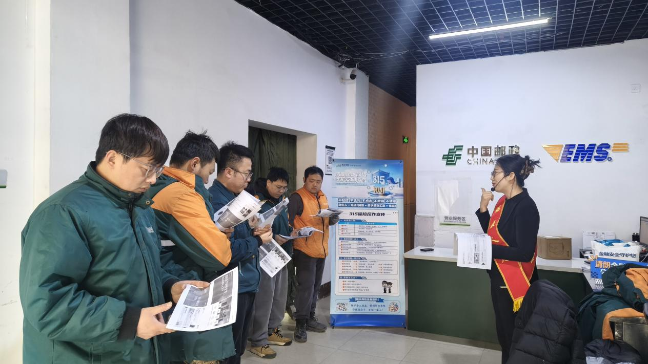 为积极响应2026年“3·15”金融消费者权益保护教育宣传活动号召,践行金融为民、消保惠民理念,切实提升一线从业人员反诈防诈意识,3月10日,瑞众保险通辽中支运营管理部负责人张海燕经理带队,走进中国邮政速递物流开展反诈安全宣教活动。