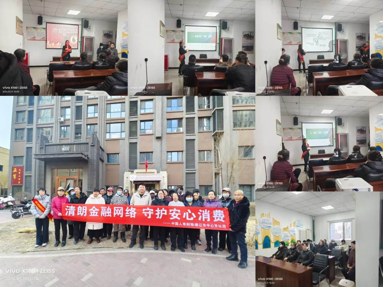 3月11日,中国人寿财险通辽市中心支公司理赔客服中心走进团结街道东顺社区,开展以“清朗金融网络 守护安心消费”为主题的金融知识普及活动。