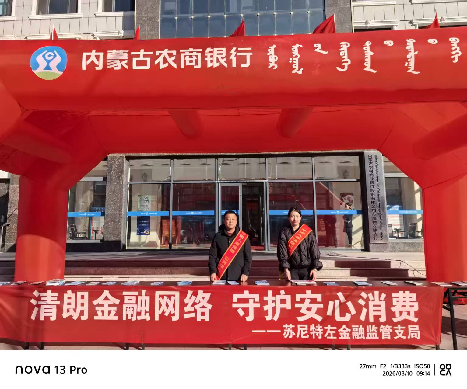 2026年3月10日,苏尼特左旗支公司参加由苏尼特左旗金融监管支局联合辖内金融机构、保险公司等单位,在全旗范围内开展的“清朗金融网络 守护安心消费”主题宣传活动。