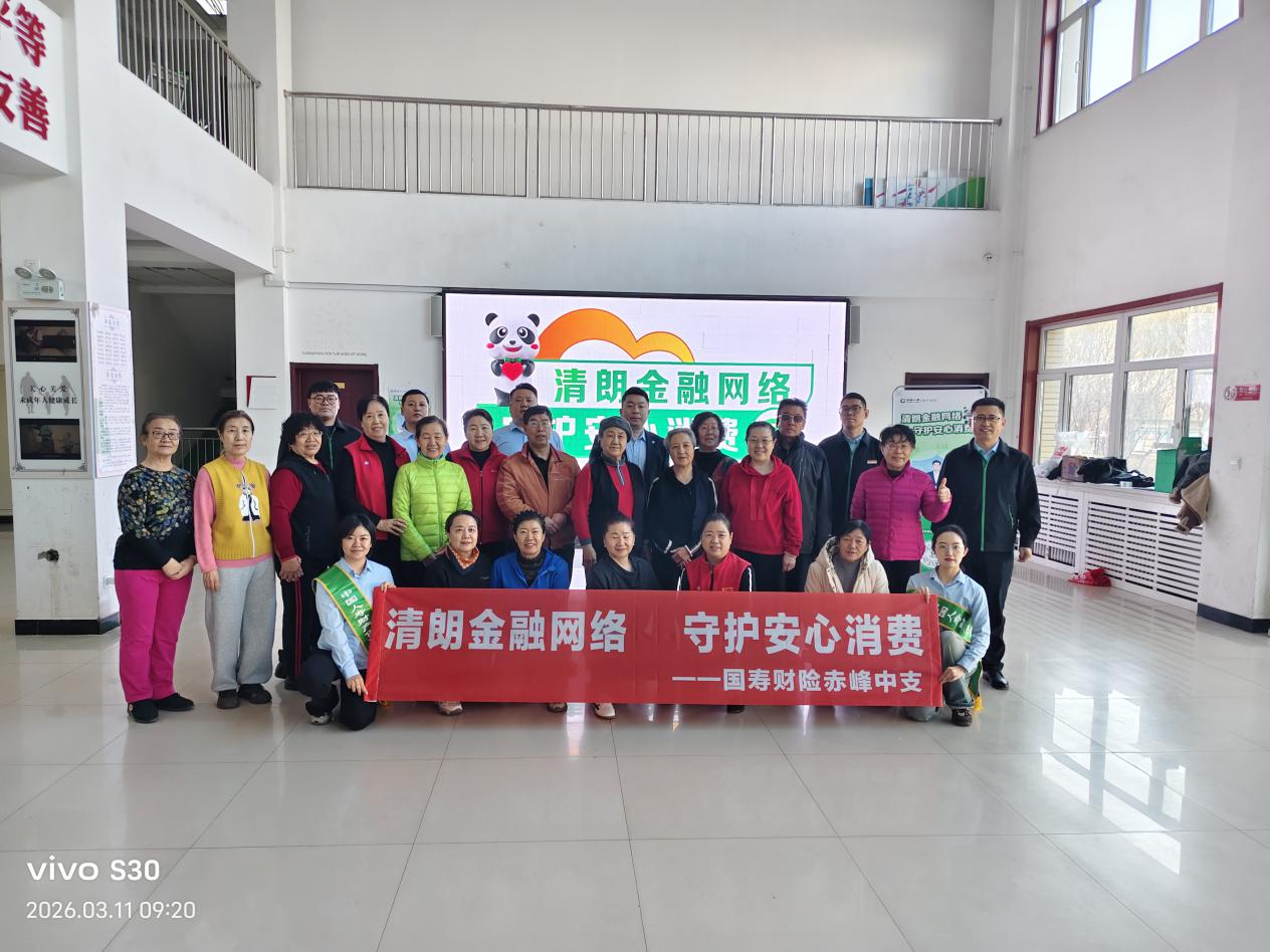 2026年3月11日,在“3·15”国际消费者权益日来临之际,国寿财险赤峰市中心支公司组织服务团队走进燕山府邸社区,开展以“清朗金融网络 守护安心消费”为主题的金融安全知识进基层宣传活动,把贴心服务与实用知识送到居民身边。