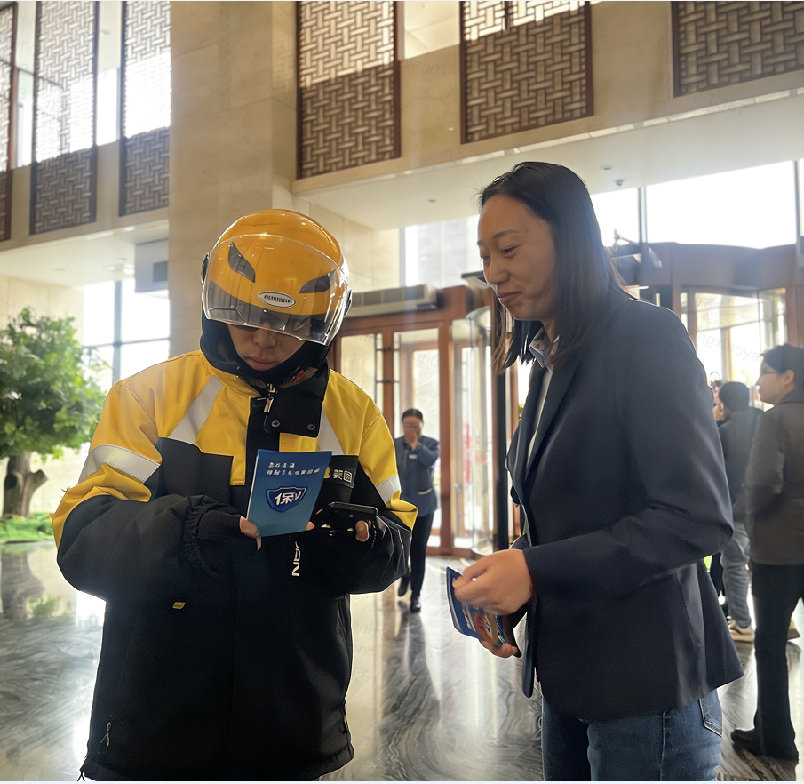 2026年3月6日上午,华泰人寿走进商圈对外卖骑手开展“普及金融知识,防范金融风险”宣教活动。