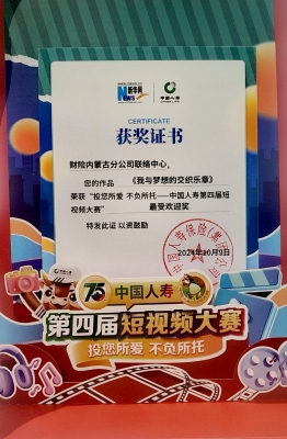 在刚刚落下帷幕的中国人寿集团第四届短视频大赛中,由中国人寿财险内蒙古分公司客户联络中心精心制作的视频作品《我与梦想的交织乐章》荣获“最受欢迎奖”。