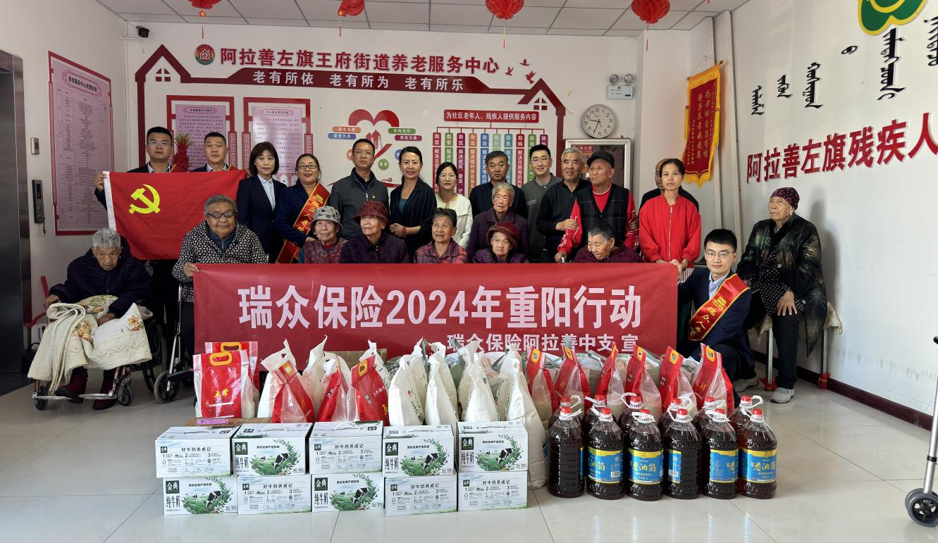 10月15日上午,瑞众保险阿拉善中支联合金融监督管理总局阿拉善分局、阿拉善盟保险行业协会走进阿拉善盟阳光旅居养老院开展“情暖金秋 爱在重阳”尊老敬老活动,为老人送去节日的慰问和祝福。