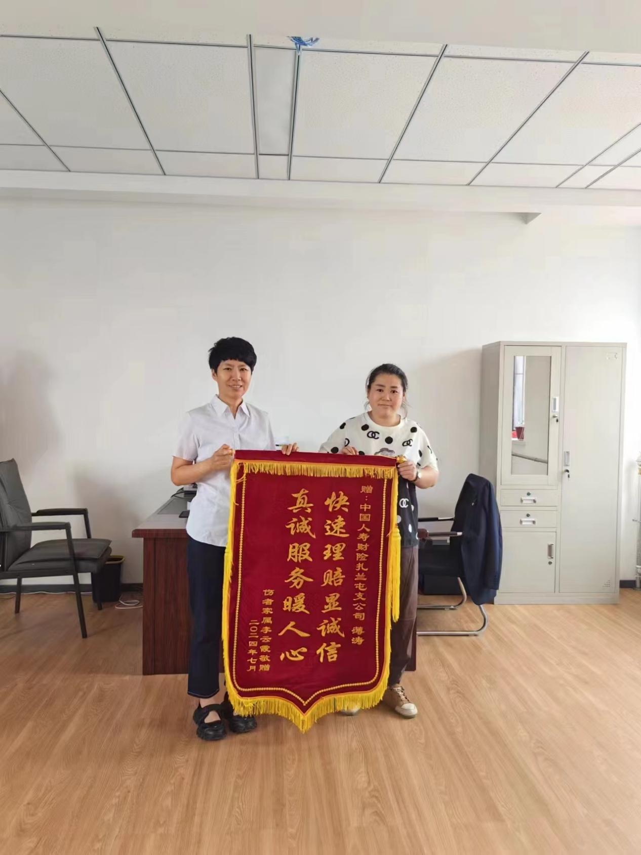 近日,呼伦贝尔市扎兰屯客户将一面印有“快速理赔显诚信 真诚服务暖人心”的锦旗送到中国人寿财险呼伦贝尔市中心支公司理赔工作人员手中,以表达对该公司暖心服务、快处快赔的感激之情。