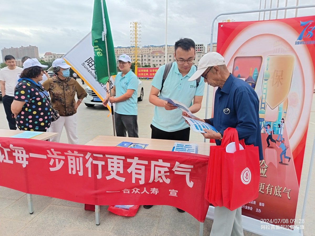 6月末,合众人寿阿拉善中心支公司组织开展了以“保险 让每一步前行更有底气”为主题的“7.8保险公众宣传”活动。