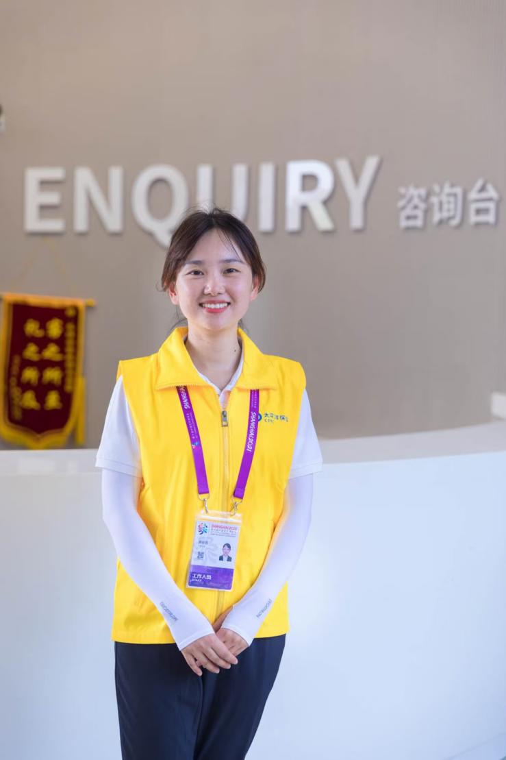 来自杉泰健康科技的徐枫将在本届进博会担任养老金融板块的志愿者。