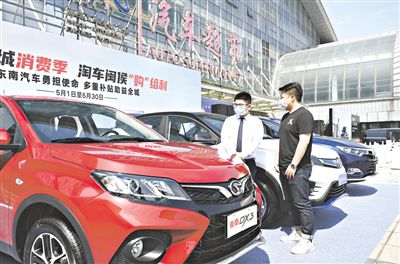 5月1日起,福建省福州市闽侯县推出二次补贴汽车消费专项活动,通过市、县两级优惠补贴叠加,助力汽车消费市场。图为闽侯县尚干镇海峡汽车文化广场的购车优惠活动现场。