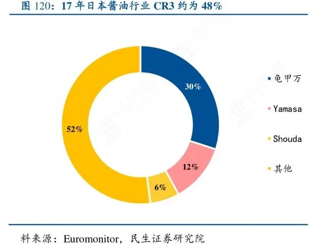 海天作为很多行业标准引领者的老大,优势明显,且仍有很大的发展空间。日本酱油的CR3(业务规模前三名的公司所占的市场份额)已达到48%,第一大厂商龟甲万市场占有率高达30%,远超第二名Yamasa的12%的市场份额。与日本酱油行业集中度相比,海天酱油的市场占有率是18%,仍然有很大的提升空间。马太效应之下,海天还表现出了酱油以外的多种可能性,刺激着资本的神经,让它们纷纷投入海天的怀抱报团取暖。