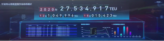 12月15日凌晨0时25分,随着宁波舟山港调度指挥中心大屏幕上的集装箱实时生产数据跳过“27534917标准箱”,宁波舟山港今年集装箱吞吐量已超去年全年总量。这是宁波舟山港深入落实“努力克服疫情影响,争取优异成绩”“努力打造世界一流强港”的最新成果。