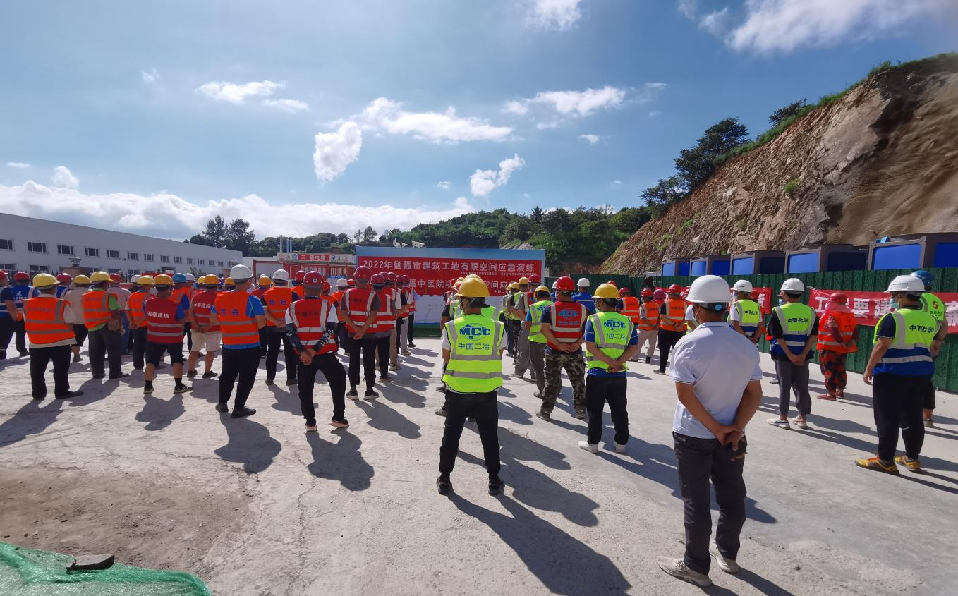 8月1日下午,栖霞市住房和城乡建设局联合中国二冶栖霞项目部组织全市建筑工地在中国二冶栖霞中医医院扩建工程现场开展有限空间应急演练活动,栖霞市9家在建项目施工单位共计100余人参加此次演练活动。