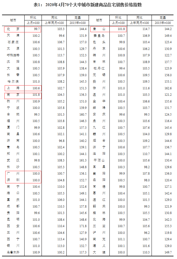 国家统计局18日公布4月70个大中城市房价,其中,有50城新建商品住宅价格环比上涨,3月为38城;环比看,唐山、南京涨幅1.8%领跑;四大一线城市中,北京环比下降0.3%,上海上涨0.6%,广州和深圳持平。