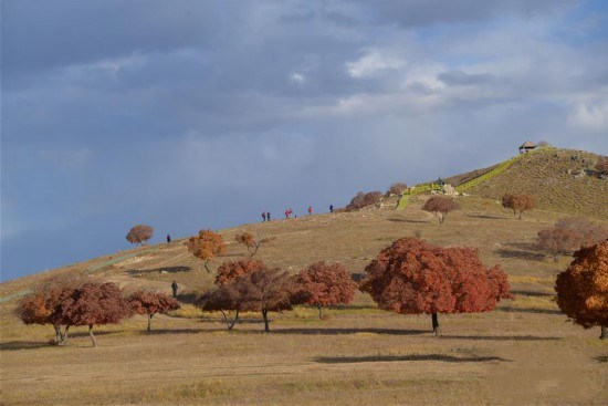 金秋时节,内蒙古兴安盟科尔沁右翼中旗五角枫生态旅游景区的五角枫迎来最佳观赏期,棵棵枫树点缀了秋日草原,美景如画。