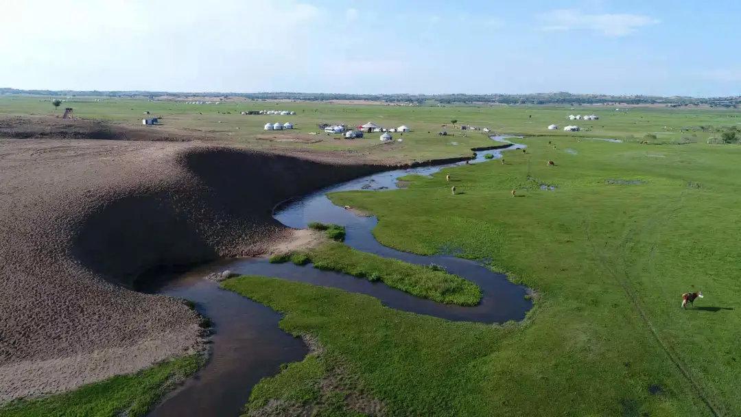 盛夏时节,内蒙古的大草原苍茫辽阔,一望无际。一场微雨过后,芳草萋萋,清香阵阵,沁人心脾。驱车沿着蜿蜒壮阔的莫日格勒河一路走向草原深处,时不时可以看到牛马悠闲地咀嚼着美味的青草,白羊像珍珠般散落在起伏的山坡上。