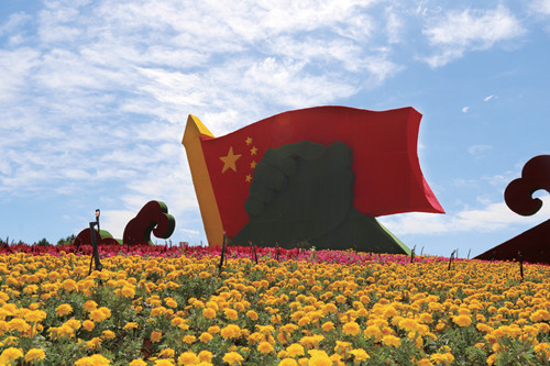 近日,在鄂尔多斯康巴什双驹广场,有一座名为“团结”的大型立体花坛全新亮相,该花坛的打造,象征着全国各族人民团结一心、共抗疫情、共同奋进的民族精神。
