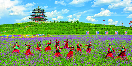 走进兴安盟突泉县曙光现代农业循环经济园区,沿着兴安盟曙光花海观赏栈道走进花海深处。