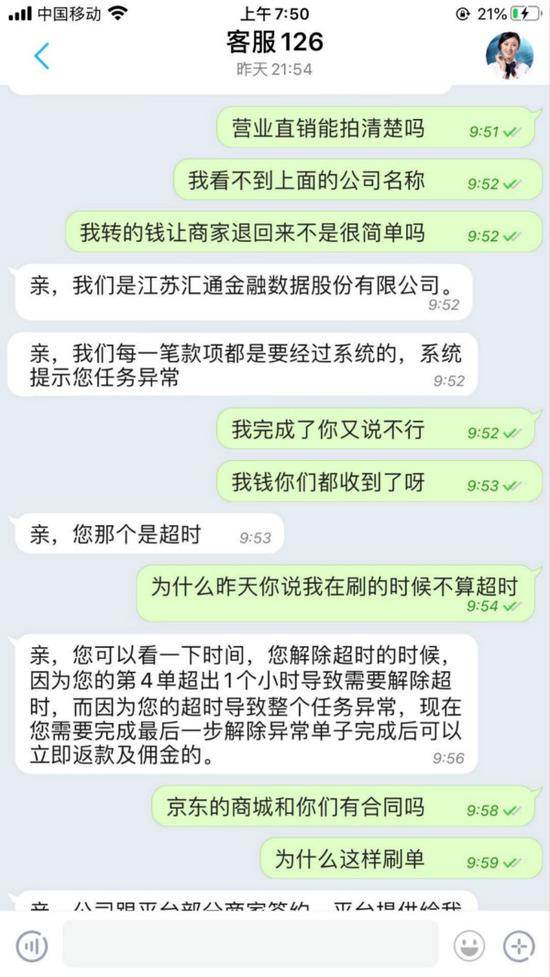 李蓓动了心。“熟人”自称是江苏金融汇通数据股份有限公司业务员。按对方要求,李蓓下载了“潮信”App。随后,一个叫“客服126”的账号添加李蓓为好友。