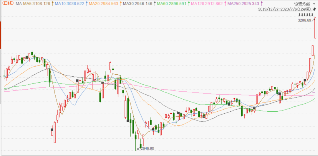 7月6日,市场迎来连续第4个大涨日。7月1日以来,上证指数每天的涨幅均超过1%。7月6日,截至午间收盘,上证指数涨超4%,其火热行情可见一斑。