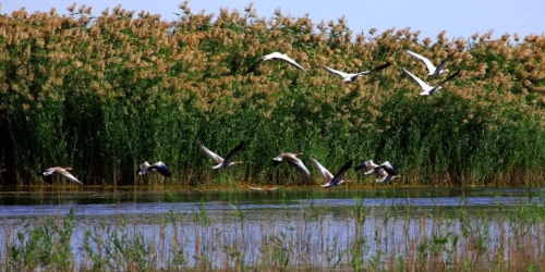 16年来,东居延海水域面积常年保持在30平方千米以上,往日寸草不生的盐碱滩,正吸引着越来越多的珍稀野生鸟类流连于此。据统计,近些年东居延海湿地环境明显改善,周边水生植物从之前的不足70公顷增加到现在的2000余公顷,林草面积恢复近7000公顷;生物多样性明显提升,栖息鸟类达90余种6万多只。往日碧波荡漾、鸥鸟翔集的东居延海再次呈现在世人的眼前。