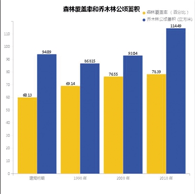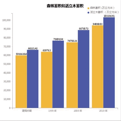 自1952年开发建设以来,几代务林人累计提供2亿立方米优质木材,栽植2000万亩人工林,有林地面积、活立木总蓄积、森林覆盖率分别从开发初期的636.5万公顷、6.6亿立方米、60.1%提高到目前的837.02万公顷、10.3亿立方米、78.39%。大兴安岭林区以不到内蒙古自治区1/3的森林面积,贡献了将近2/3的森林蓄积量。