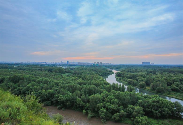 傍晚时分,站在大黑山山顶,放眼望去,被誉为“红城”的内蒙古兴安盟盟所在地乌兰浩特在绿色的“海洋”中若隐若现,洮儿河与归流河在山脚下相聚,汇入嫩江,向松花江奔流而去。河水掩映在郁郁葱葱的森林中,夕阳下波光粼粼,美的让人心动,让人流连忘返。