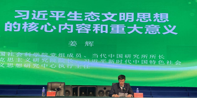 中国社会科学院党组成员、当代中国研究所所长、马克思主义研究院院长、习近平新时代中国特色社会主义思想研究中心执行主任姜辉以《习近平生态文明思想的核心内容和重大意义》为题进行主旨发言。他表示,习近平生态文明思想深刻揭示了人类文明发展规律,指导中国生态文明建设的同时引领了人类文明的发展,为世界提供了人类社会生态文明发展的中国智慧、中国经验、中国方案。对于内蒙古自治区发展来讲,同样意义重大。