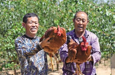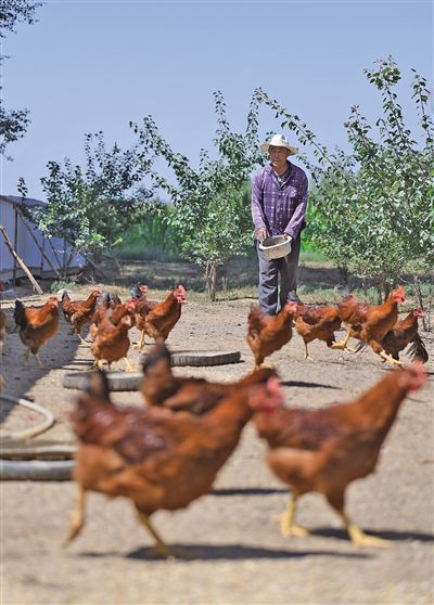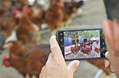 “我家的200棵果树去年已经挂果有了收入,我还依托林果产业,养殖了600多只生态鸡,一只鸡最少能卖上100多块钱。”村民郭小毛给生态鸡拍完照片,准备发朋友圈出售。