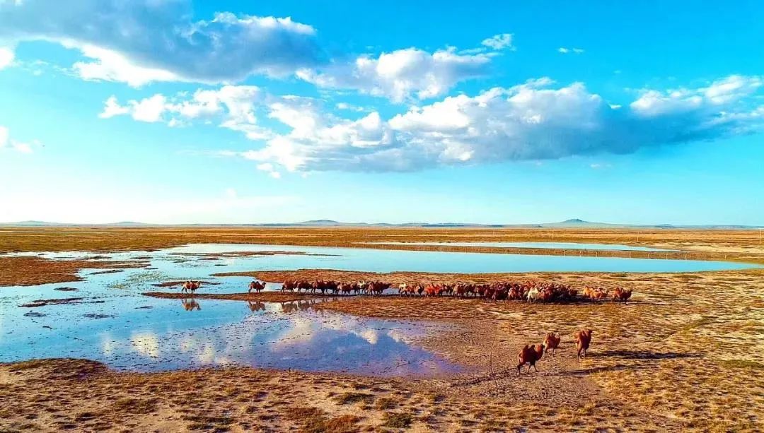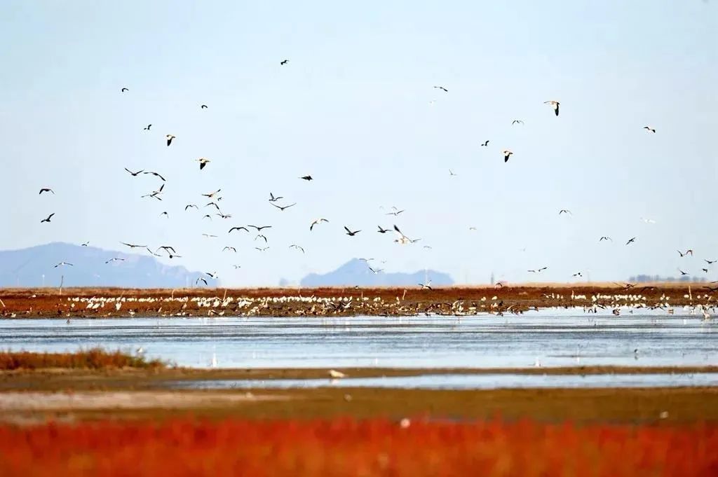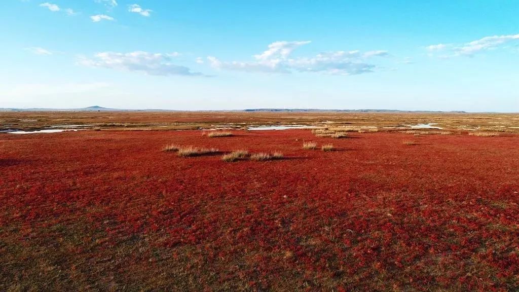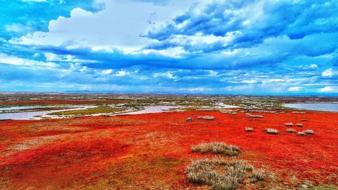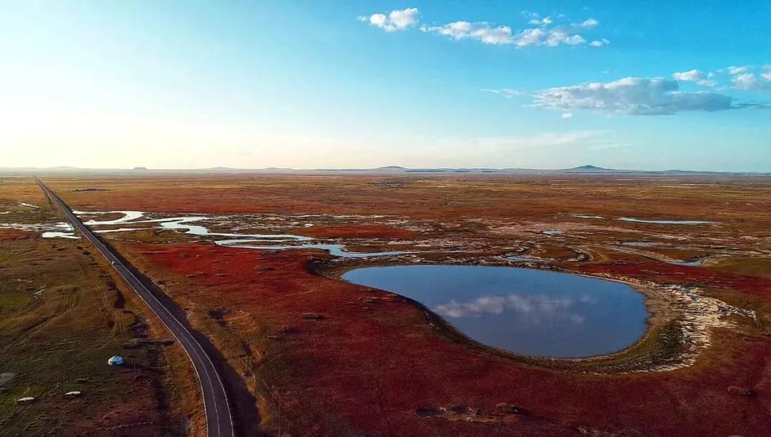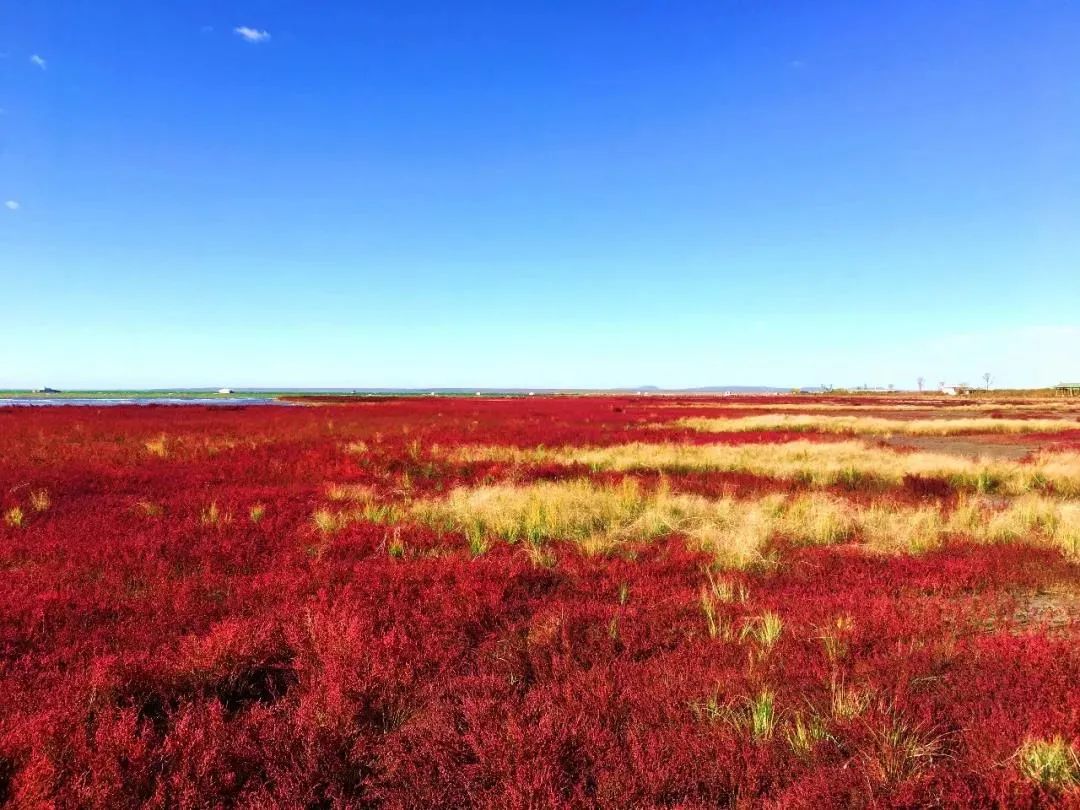 这鲜艳动人的红海滩与色彩斑斓的贡格尔草原、姿态万千的芦苇蒲草湿地景观、数以万计的候鸟群和碧波浩荡的达里湖,构成了一幅绝美的秋季盛景。