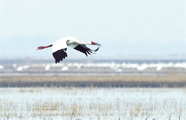 根据生态评估及数据监测,目前,图牧吉保护区草地生物多样性每平方米可达18种,单位平方米生物量鲜重可达4000克,单日普查到的大鸨数量较2017年上升31%,达到253只,白鹤种群数量增加2100余只,高峰期鸟类迁徙数量达20余万只,“百鸟天堂”展现出欣欣向荣的发展态势。