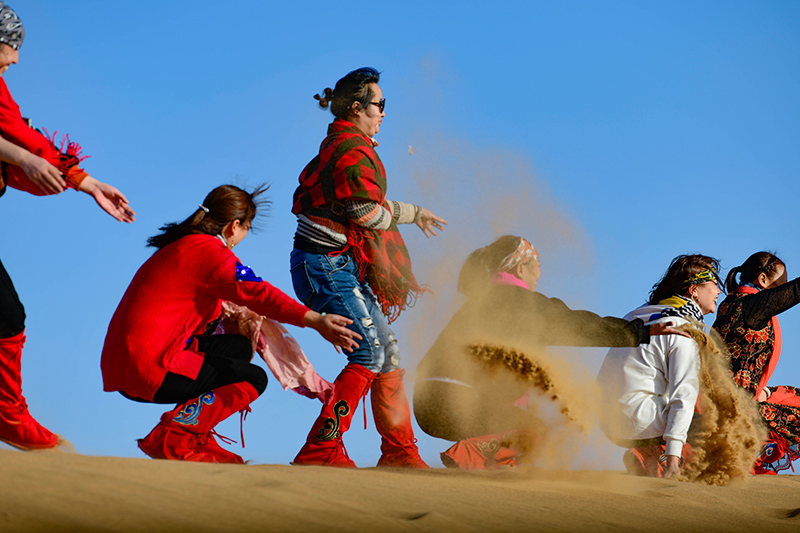 10月21日,游客在阿拉善通湖草原旅游区沙漠观光旅游项目中游玩