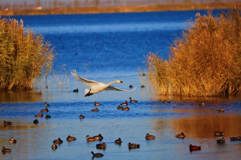 秋到乌梁素海,淡雅、温柔、静美。这里的天或晴空万里、一碧如洗,或霞光万道、暮霭沉沉;这里的水,波澜不兴、悠悠荡荡、芦苇起伏、随风摇曳;这里的鸟,振翅飞翔、踏波逐浪、畅游水面、划破清波。乌梁素海的秋,少了喧哗、多了沉淀,少了绚丽、多了清秀。