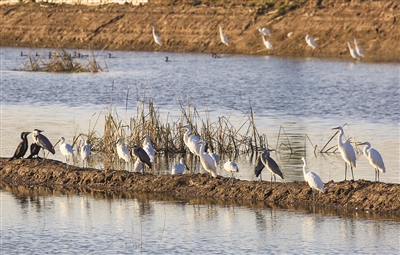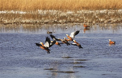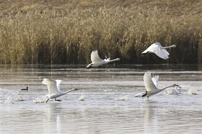 10月下旬至11月上旬的黄河内蒙古托克托县段附近的湿地里,天鹅成群觅食、灰鹤嬉戏高歌,更有赤麻鸭、鸬鹚、鸿雁、白鹭、苍鹭等多种候鸟云集,俨然已经成为候鸟迁徙的优良中转栖息地。