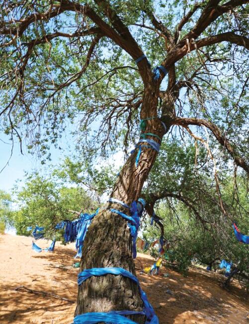数百年来,每年农历五月初三,榆树壕就举行祭树活动,古老的蒙古族祭树礼俗在这里代代相传。鄂托克前旗六十棵榆树祭已列入自治区级非物质文化遗产保护名录。