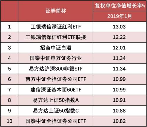 小编依照主动偏股类、被动指数类、债券类、QDII类四种类别,整理了2019年1月涨幅排名前十的基金,供大家参考。
