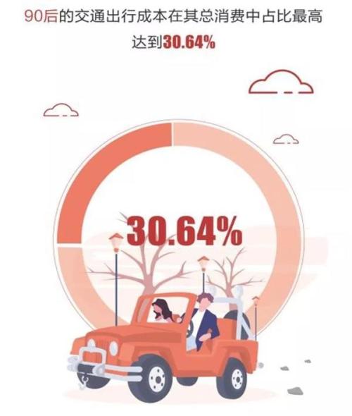 数据还显示,90后最爱“玩”,90后交通出行成本占比最高,达到30.64%,主要用于机票、火车票、打车等消费。