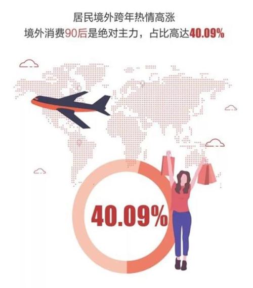 90后也是最热衷春节假期外出旅游的人群,其境外消费支付笔数占微信境外支付总数的比重超过4成,达到40.09%。