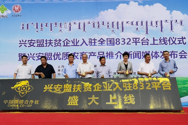 8月18日,由兴安盟供销社主办,北京林业大学、中国传媒大学等单位协办,兴安盟科右前旗供销社承办的兴安盟扶贫企业入驻全国扶贫“832平台”上线仪式暨兴安盟优质农畜产品推介新闻媒体发布会在兴安盟供销社电商实训基地召开。