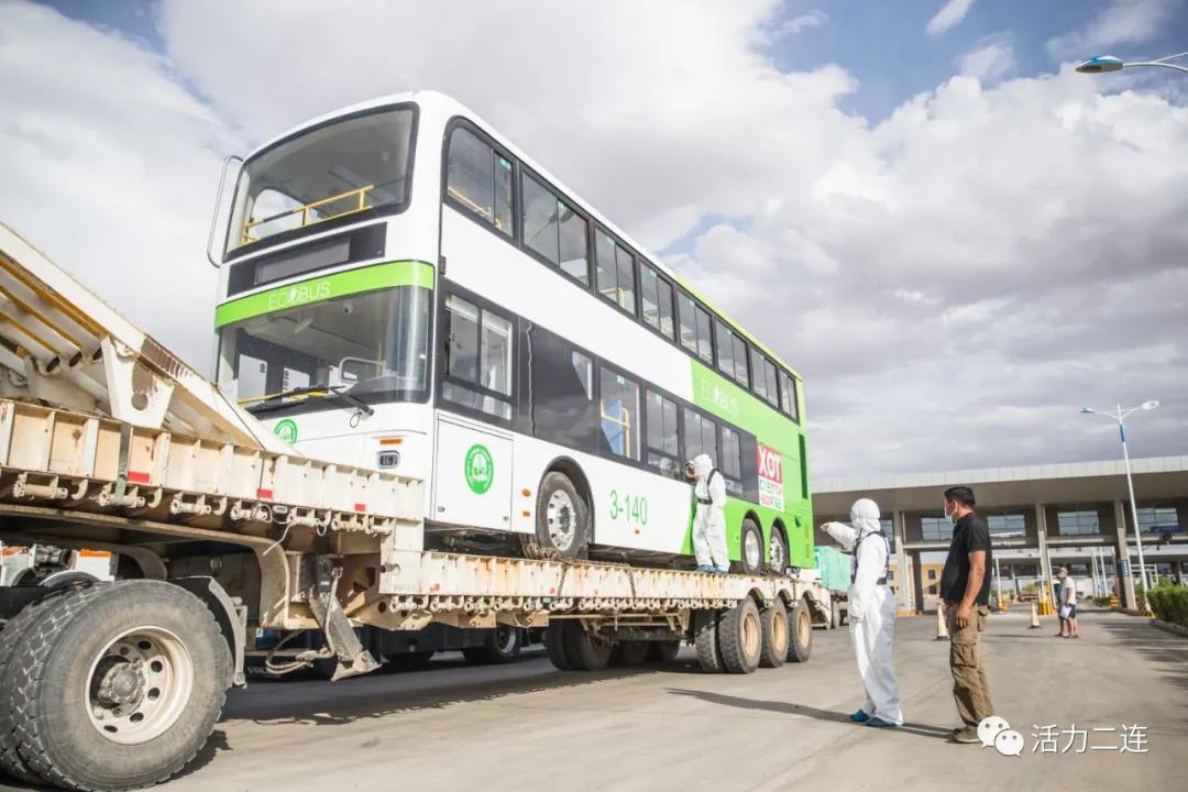 近日,蒙古国从中国购买的双层电动巴士从内蒙古二连浩特公路口岸出境。二连出入境边防检查站开通绿色通道,第一时间办理通关手续,为中国汽车“走出去”保驾护航。