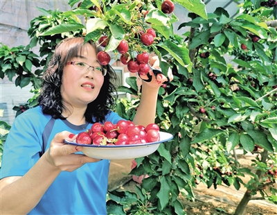 初夏,在呼和浩特市新城区野马图村特色种植大棚内,硕大的樱桃挂满枝头,一排排罗马生菜郁郁葱葱煞是喜人。野马图村发展种植优质绿色特色农作物,建造了拥有400座大棚的规模采摘园,种植了罗马生菜及樱桃、蟠桃、葡萄等生长周期短、市场需求大的30多种优质绿色果蔬,采摘占比达80%,其余直供饭店、菜市场、超市等,农产品出棚就有市场。樱桃种植大户杨喜兔家种植的120株樱桃,从4月底开始采摘至今热度不减,仅樱桃一项最少能挣20多万元。