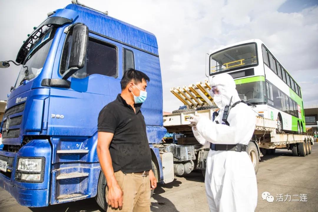 近日,蒙古国从中国购买的双层电动巴士从内蒙古二连浩特公路口岸出境。二连出入境边防检查站开通绿色通道,第一时间办理通关手续,为中国汽车“走出去”保驾护航。