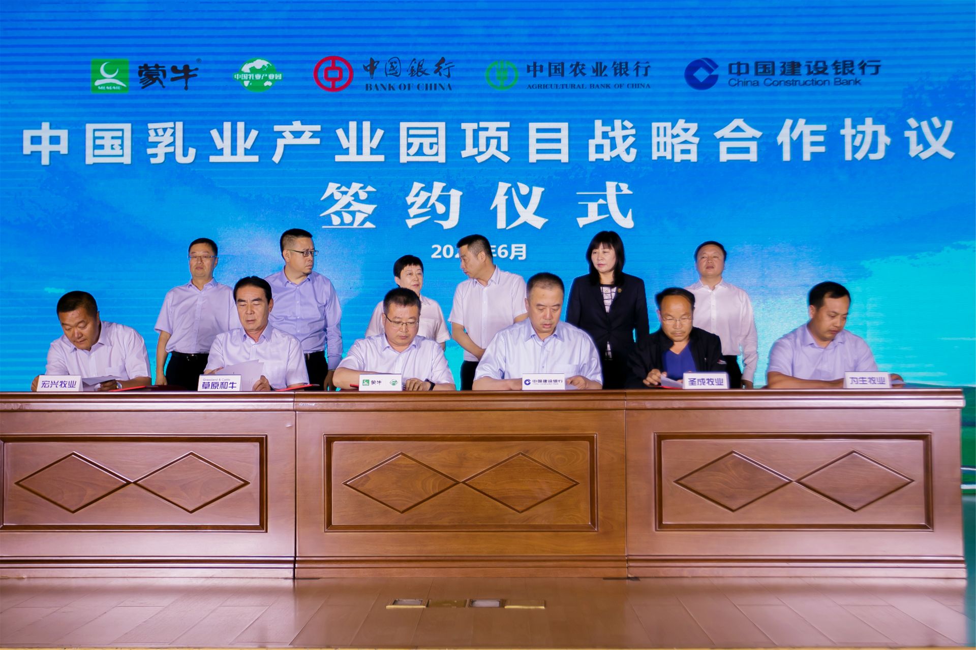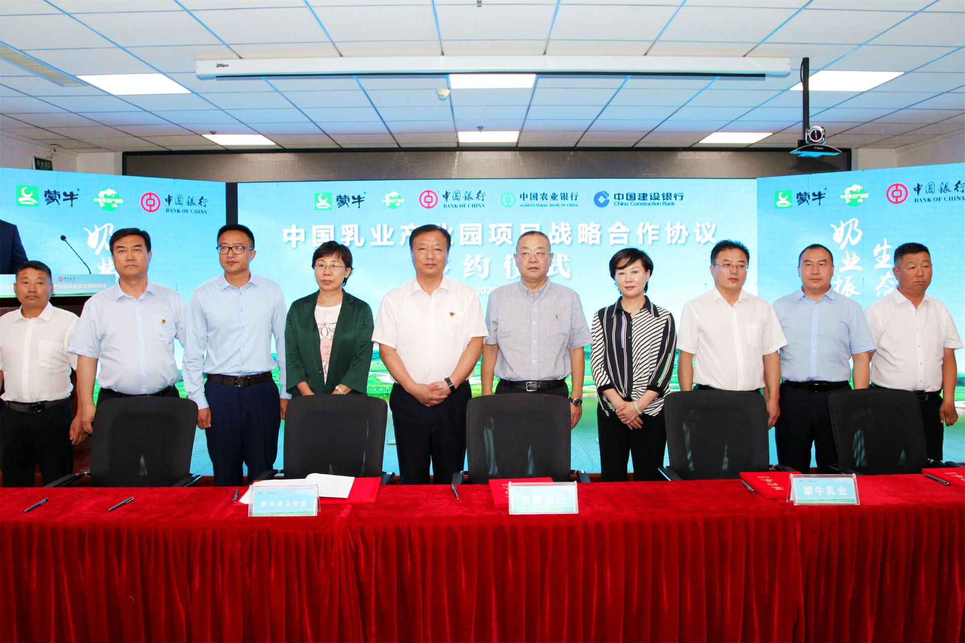 活动现场,蒙牛乳业集团分别与中国银行、中国农业银行、中国建设银行签署战略合作协议,包括中国银行在内的金融机构将与蒙牛一道,将携手为中国乳业产业园高质量发展提供金融助力。