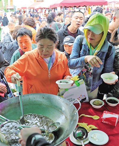 牙克石市民在品尝美食。