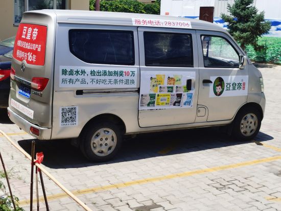 图为在车辆上的“检出添加剂奖10万”的标语。