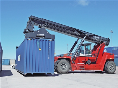 满洲里铁路口岸集装箱换装场作业场景。雷建军 摄