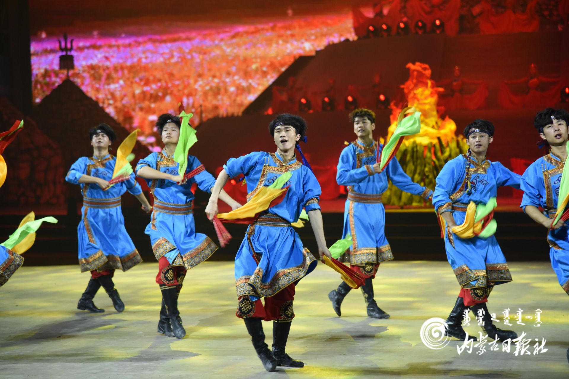《相会敖包》整场演出分为3幕,分别是《敖包祈福》《敖包情缘》《敖包盛会》。现场,高科技舞美惊艳登场,特效绚丽,草原狼的加入让现场更加震撼。
